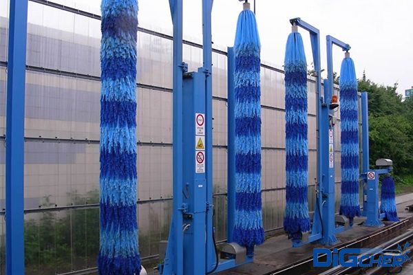 TR ATC軌道列車自動清洗機(jī)主體采用噴淋濕潤、預(yù)備洗刷、洗滌洗刷、漂洗洗刷和吹掃干燥等不同的清潔方式,配合列車勻速通過清洗工作場地除去列車表面的塵埃和污垢,達(dá)到運營列車潔凈要求。該設(shè)備執(zhí)行機(jī)構(gòu)及電動機(jī)防護(hù)等級采取IP56國際標(biāo)準(zhǔn),防水防塵。仿形清洗軌跡掃描采用PLC可編程及變頻調(diào)速控制系統(tǒng),并配備防碰撞預(yù)警系統(tǒng)。清洗過程采用水基清洗劑,具有清洗速度快、效果突出、潔凈度高、并具有優(yōu)異的環(huán)保性能等特點。另外,該系統(tǒng)還應(yīng)用蒸氣加溫和電加熱干燥機(jī)系統(tǒng),具有升溫快,效果好等特點。