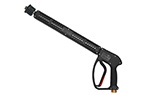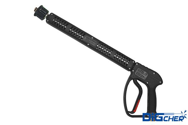 高壓噴槍通過高壓管路總成連接到高壓水泵的輸出端,是高壓清洗機的執(zhí)行兼控制系統(tǒng)。高壓噴槍可以按排放壓力的控制閥形式做進一步定義,主要可分為兩種,溢流型和截流型。溢流型高壓水槍的工作原理是在扣動扳機時,槍上的溢流閥關閉,壓力得以迅速增大從而形成高壓水射流,當松開扳機時,槍上的溢流閥打開,水從溢流閥流出,從而釋放壓力。而截流型高壓水槍的工作原理則完全不同,扣動扳機時,壓力增大,當松開扳機時,高壓水仍保持在系統(tǒng)中,通過高壓水泵上的溢流閥流出或是循環(huán)利用。